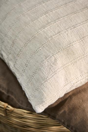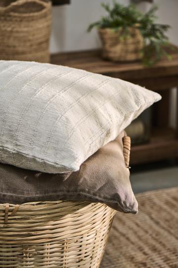 This handwoven wool deep pile cushion , crafted by skilled Indian artisans, features an 80% wool and 20% cotton blend. Dyed and spun in-house, it showcases a Kelim-inspired pattern in...