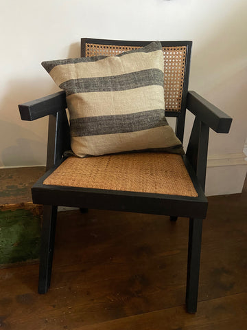 Natural linen cushion cover with embroidered black rectangle creating a strong style inspired by 19th century art works. MATERIAL Front and back: 100% Linen with cotton embroidery to the front, ...