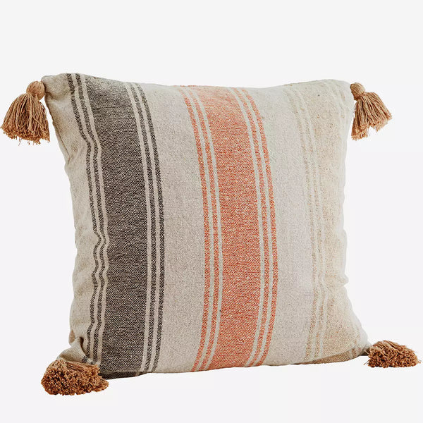 ITEM DESCRIPTION Colour: Sand, charcoal, beige, orange Material: 65% recycled cotton, 35% other fibres Additional info: Spot clean with a damp cloth. Best suitable with 80x80DUN filling Measures: 60x60 cm...