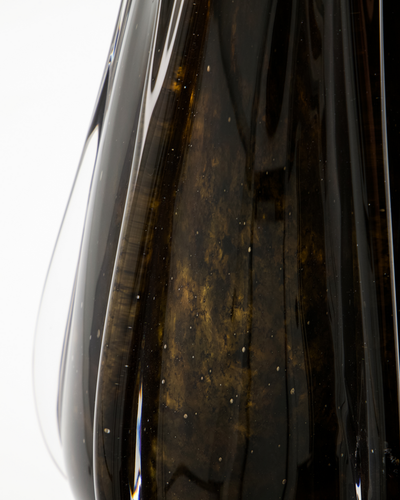 HThis handmade vase, crafted from mouthblown glass, brings a touch of refined elegance to any space. Its sophisticated brown hue and substantial weight make it a stunning piece, whether filled with flowers or displayed on its own.