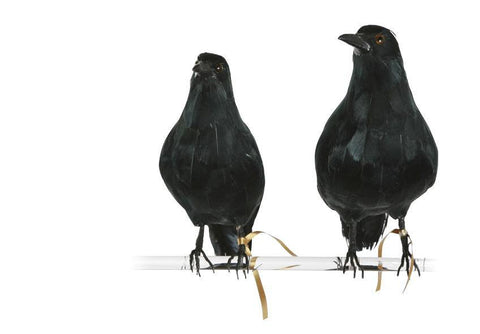 Delivery & Returns Code Crow- Small DESCRIPTION: Crow made of foam, feathers, plastic, and metal. Small Size: 17cm approx height, 27cm approx beak- back feather, 8.5cm approx body width...