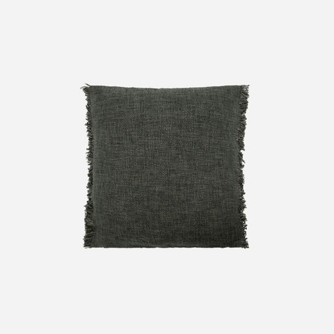 This dark green cushion cover, handmade from a blend of cotton, linen, and lyocell, adds a bohemian touch to your sofa or bed. The textured fabric and fringed edges bring...