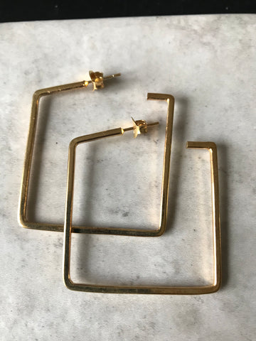 Classic, minimalistic squared hoops with post and butterfly backs, in gold plated 925 silverHoop diameter 4 cm