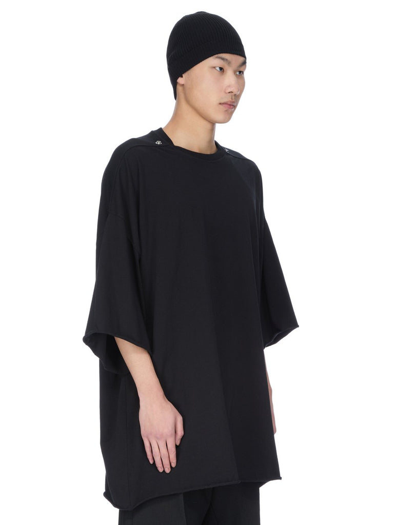 Masnada M3512OVERSIZE TROUSERS 72%WV 23%CO 5%ME Colour black Oversize trousers in crumpled wool and cotton with semi constructed tailor waist band.Button fly and single masnada horn button. Jeans pocket styling...