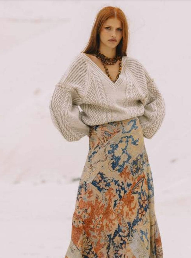 Wide neck knitted top. Soft and warm texture with so many details that give shape to this top