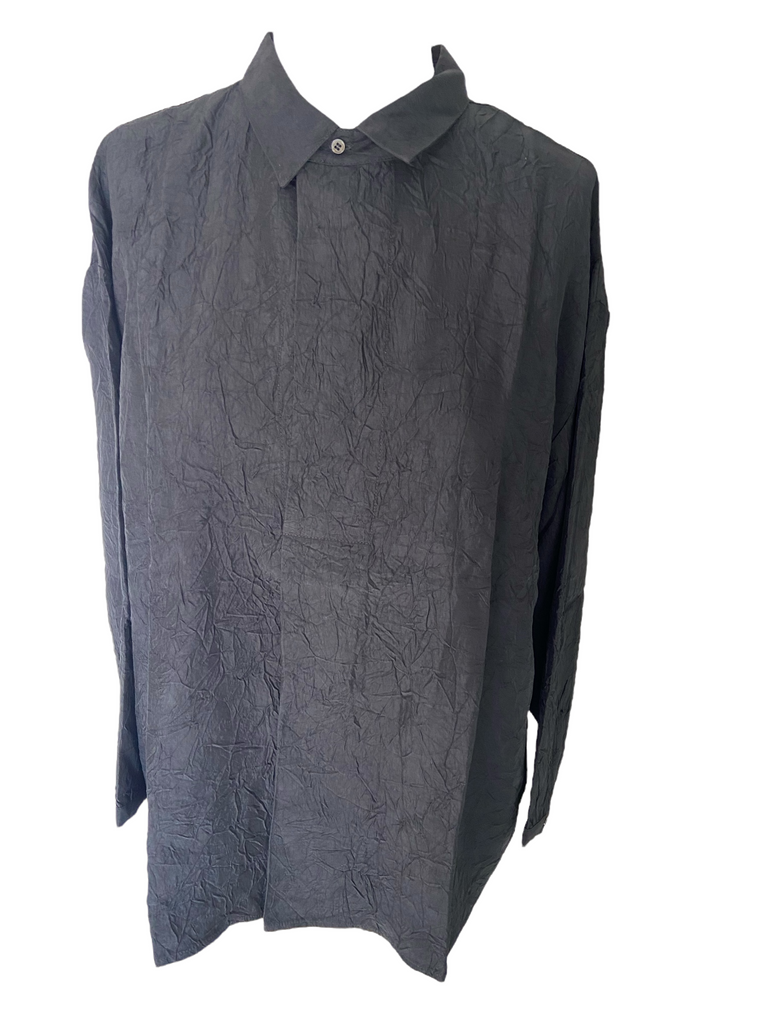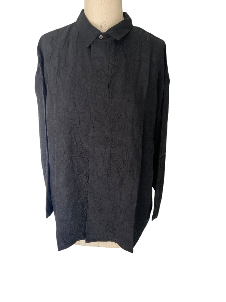 Rabens Saloner crinkled placket shirt Ellenor Black