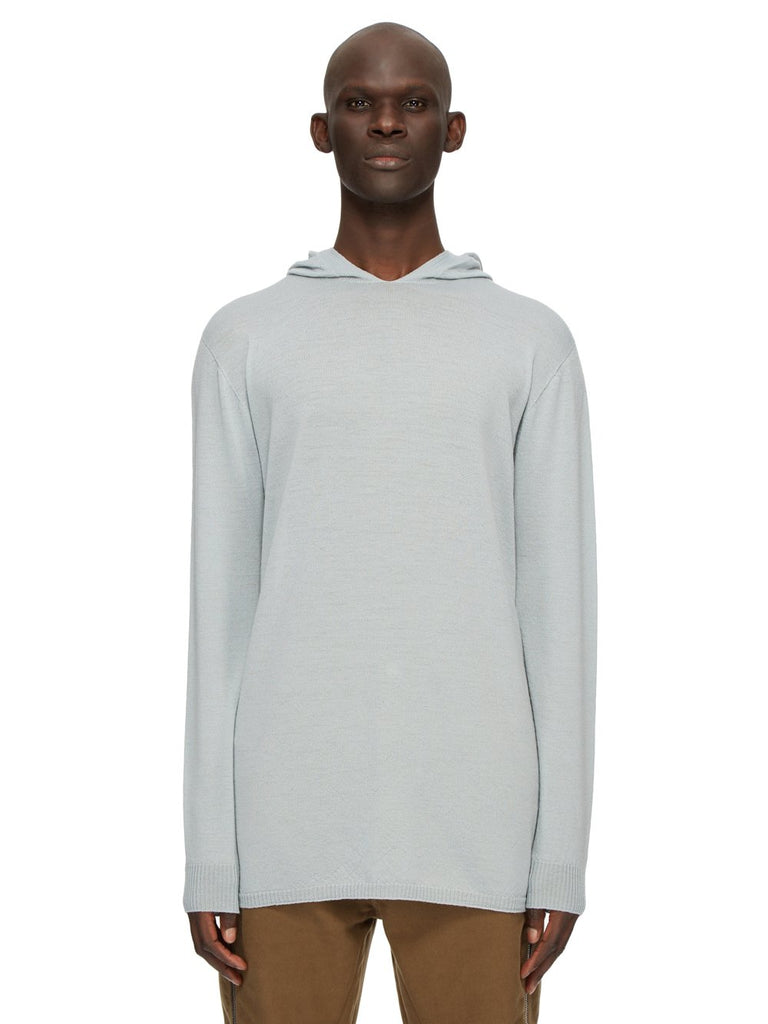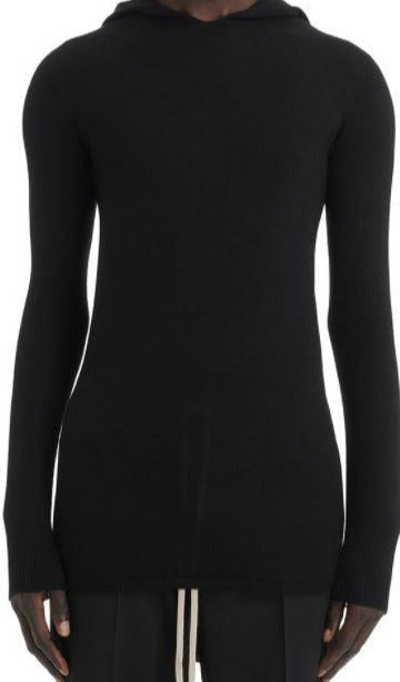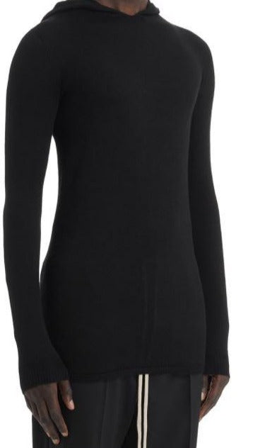 RICK OWENS PORTERVILLE OVERSIZED LS HOODIE IN BLACK LIGHTWEIGHT WOOL KNIT