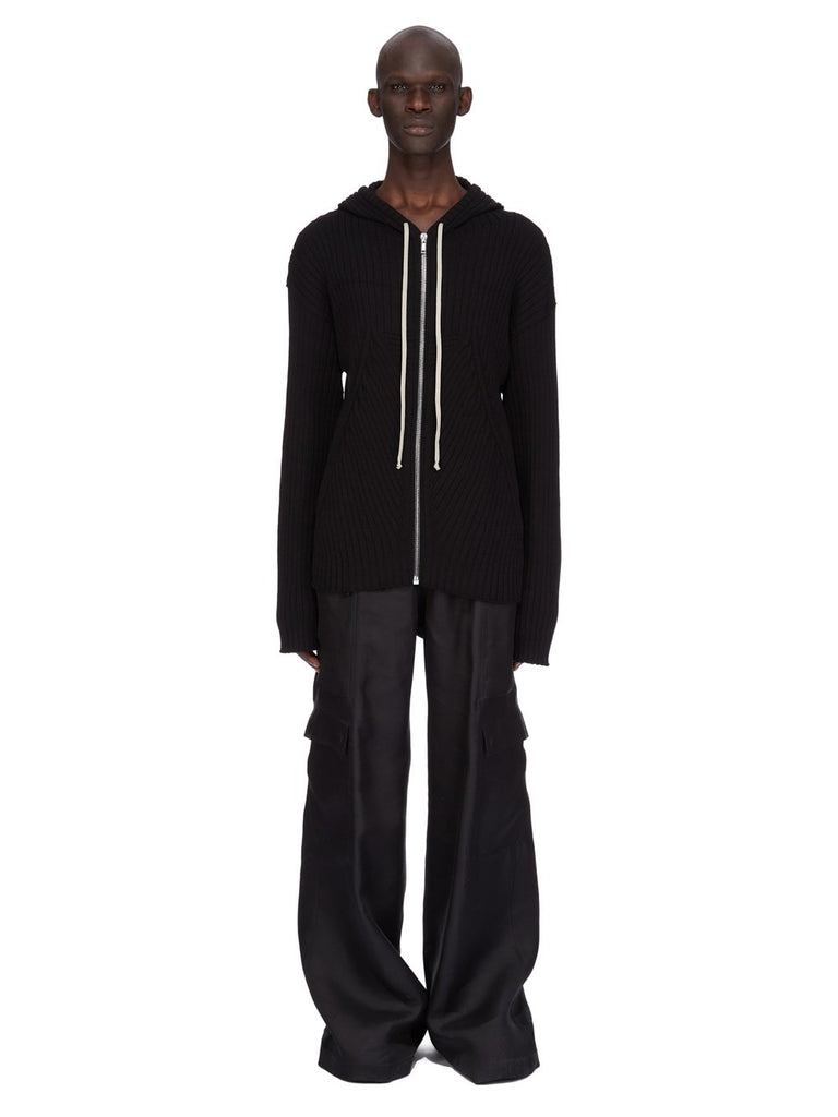 RICK OWENS SS25 HOLLYWOOD ZIPPED HOODIE IN BLACK MEGARIB COTTON KNIT