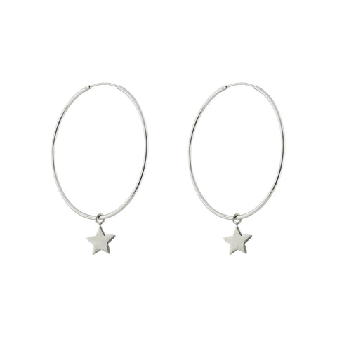 Hoop earrings with a delicate star drop. 925 silver - made from recycled silverHoop diameter: approx.4 cm Gift boxedPlease note that we are unable to accept returns or exchanges on...