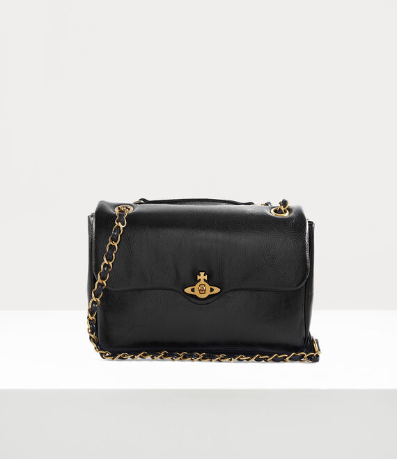 Anita Chain Shoulder bag features a polished leather design, enhanced by our newly developed silhouette lock system on the front flap, complete with a gold-tone brass finish. The piece adopts the 'Ottoman' lining, reflecting the Neo-classical theme of this season's collection.