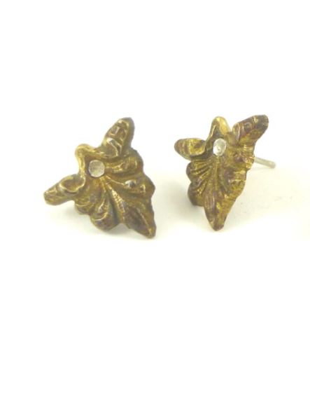 Deco earrings made from vintage gold leafed furniture decorations in bronze and silver pin.